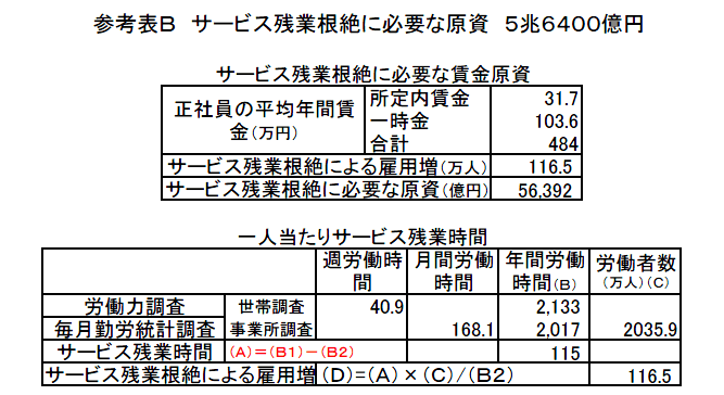 非常に控えめな試算だが、それでも新たに116.5万人の雇用が創出されることになる。そのために必要な賃金原資は5兆6000億円である。